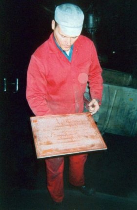 Andrew Laing holding the 'pattern' after it has been removed from the sand forming the mould for the casting.
