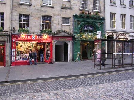 The archway of 142 Assembly Close next to the White Dove souvenir shop.